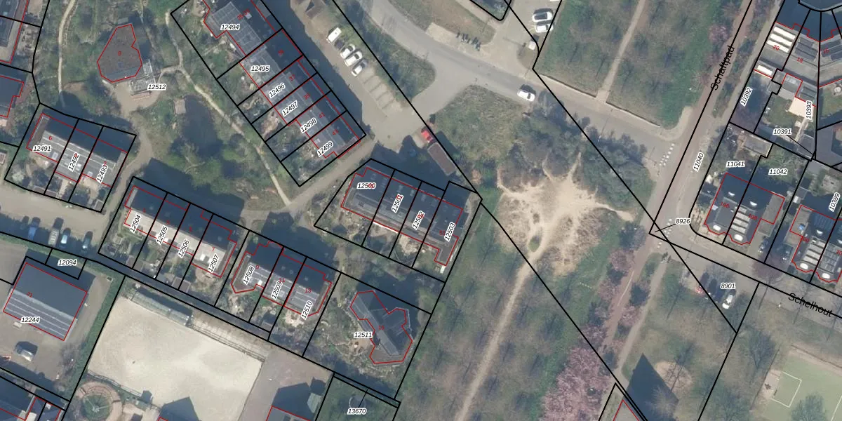 Het adres is gelegen op perceel 12502 in de sectie A en de kadastrale gemeente Houten. De kadastrale aanduiding is aldus HTN04-A-12502. Het perceel is kleiner dan gemiddeld in Houten. Het perceel is 120 m² groot, terwijl het gemiddelde ligt op 2873 m². De grootste perceeloppervlakte in de kadastrale gemeente is 45,3 ha. De kleinste oppervlakte bedraagt 0 m². Op het perceel bevinden zich geen andere adressen. De laatste wijziging in het de Basisregistratie Kadaster (BRK) was op 03-04-2015.
