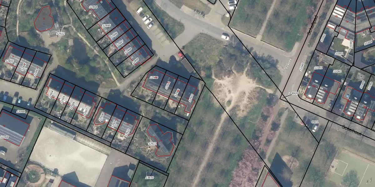 Het adres is gelegen op perceel 12503 in de sectie A en de kadastrale gemeente Houten. De kadastrale aanduiding is aldus HTN04-A-12503. Het perceel is kleiner dan gemiddeld in Houten. Het perceel is 195 m² groot, terwijl het gemiddelde ligt op 2873 m². De grootste perceeloppervlakte in de kadastrale gemeente is 45,3 ha. De kleinste oppervlakte bedraagt 0 m². Op het perceel bevinden zich geen andere adressen. In de Basisregistratie Kadaster (BRK) werden de grenzen van het perceel geregistreerd op 03-04-2015.