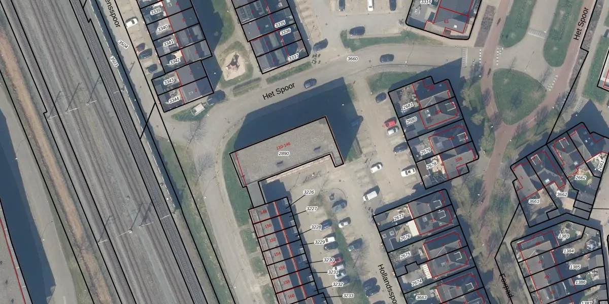 Het perceel waarop Het Spoor 120 staat heeft een oppervlakte van 448 m². Dit is een groot perceel. De perceeloppervlakte wordt geregistreerd door het Kadaster. Gedetailleerde informatie over de maten van dit perceel kunt u vinden in het rapport Kadastrale kaart met maatvoering van Het Spoor 120.