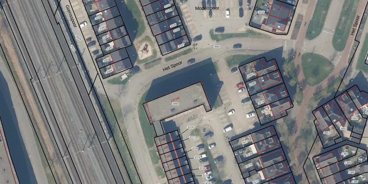 Het perceel waarop Het Spoor 140 staat heeft een oppervlakte van 448 m². Dit is een groot perceel. De perceeloppervlakte wordt geregistreerd door het Kadaster. Gedetailleerde informatie over de maten van dit perceel kunt u vinden in het rapport Kadastrale kaart met maatvoering van Het Spoor 140.