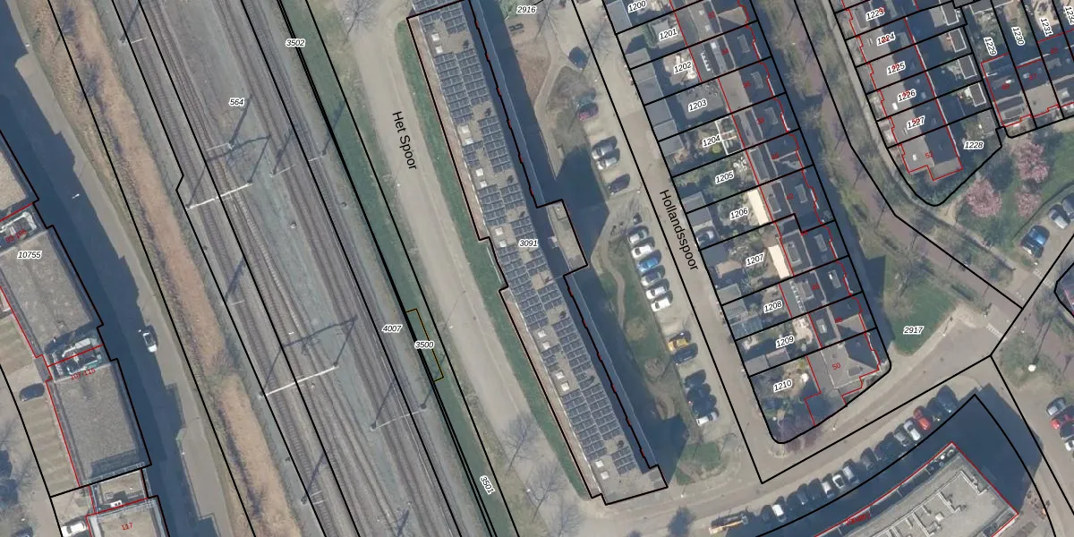 Het perceel waarop Het Spoor 190-8 staat heeft een oppervlakte van 1233 m². Dit is een zeer groot perceel. De perceeloppervlakte wordt geregistreerd door het Kadaster. Gedetailleerde informatie over de maten van dit perceel kunt u vinden in het rapport Kadastrale kaart met maatvoering van Het Spoor 190-8.