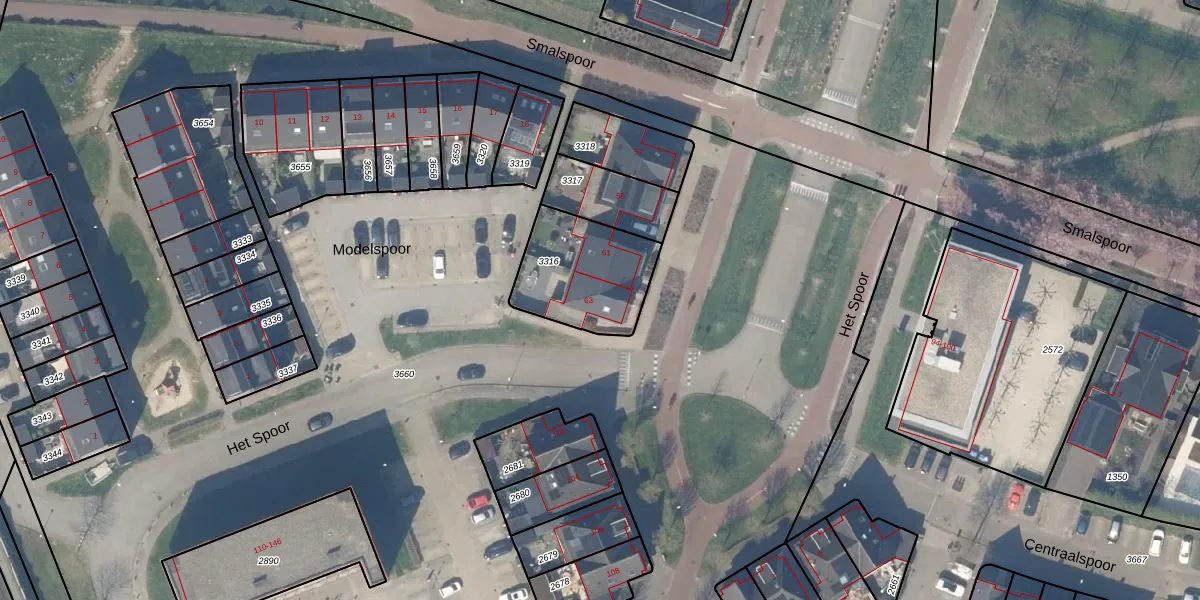 Het perceel waarop Het Spoor 63 staat heeft een oppervlakte van 375 m². Dit is een groot perceel. De perceeloppervlakte wordt geregistreerd door het Kadaster. Gedetailleerde informatie over de maten van dit perceel kunt u vinden in het rapport Kadastrale kaart met maatvoering van Het Spoor 63.