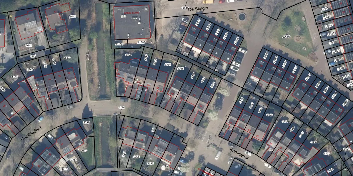 Gebruik de zoekbalk of klik op een perceel voor informatie over de adressen binnen dit perceel.