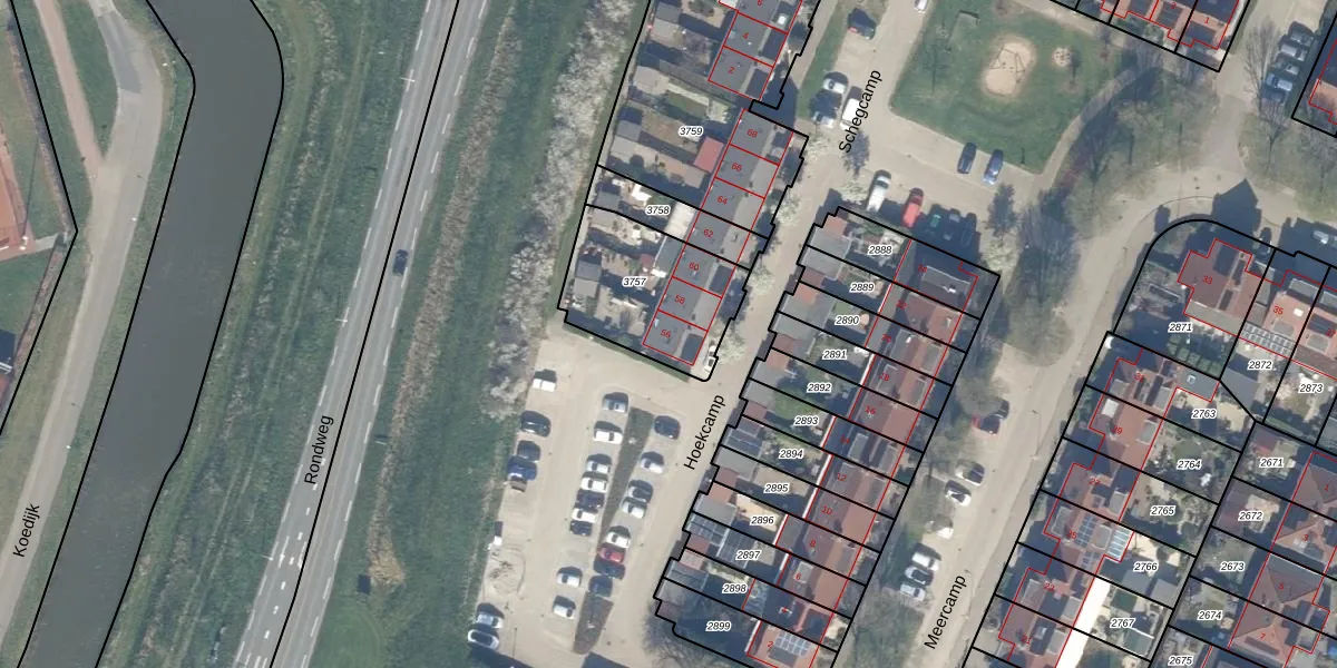 Het perceel waarop Hoekcamp 56 staat heeft een oppervlakte van 460 m². Dit is een groot perceel. De perceeloppervlakte wordt geregistreerd door het Kadaster. Gedetailleerde informatie over de maten van dit perceel kunt u vinden in het rapport Kadastrale kaart met maatvoering van Hoekcamp 56.