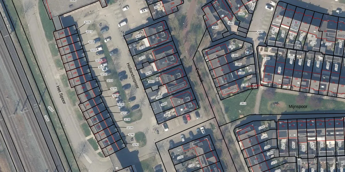 Het perceel waarop Hollandsspoor 10 staat heeft een oppervlakte van 187 m². Dit is een middelgroot perceel. De perceeloppervlakte wordt geregistreerd door het Kadaster. Gedetailleerde informatie over de maten van dit perceel kunt u vinden in het rapport Kadastrale kaart met maatvoering van Hollandsspoor 10.
