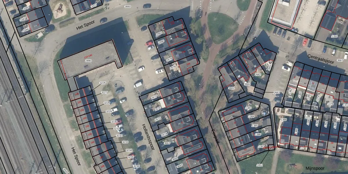 Gebruik de zoekbalk of klik op een perceel voor informatie over de adressen binnen dit perceel.