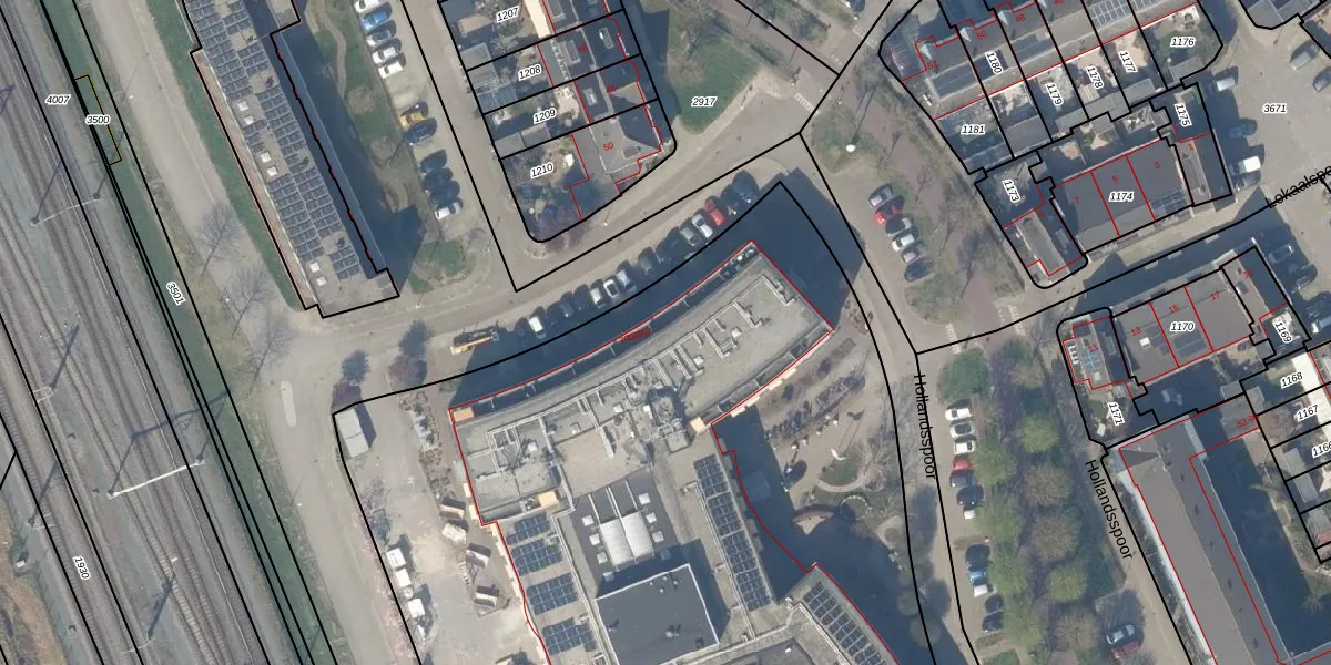 Het perceel waarop Hollandsspoor 23 staat heeft een oppervlakte van 8108 m². Dit is een zeer groot perceel. De perceeloppervlakte wordt geregistreerd door het Kadaster. Gedetailleerde informatie over de maten van dit perceel kunt u vinden in het rapport Kadastrale kaart met maatvoering van Hollandsspoor 23.