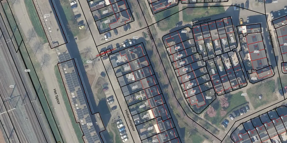 Het perceel waarop Hollandsspoor 34 staat heeft een oppervlakte van 184 m². Dit is een middelgroot perceel. De perceeloppervlakte wordt geregistreerd door het Kadaster. Gedetailleerde informatie over de maten van dit perceel kunt u vinden in het rapport Kadastrale kaart met maatvoering van Hollandsspoor 34.