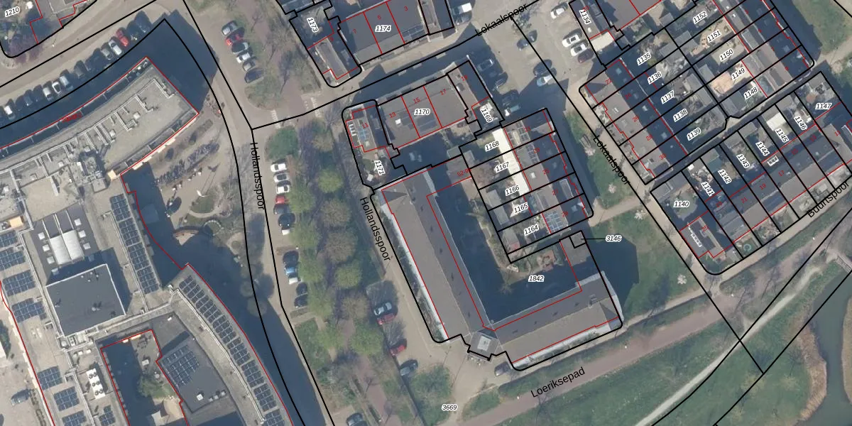 Hollandsspoor 56 is gelegen op kadastraal perceel HTN04B1842. Deze kadastrale aanduiding is uniek en wordt gebruikt door het Kadaster om eigendomsrechten en andere zakelijke rechten vast te leggen. Het perceel maakt onderdeel uit van de kadastrale gemeente Houten.