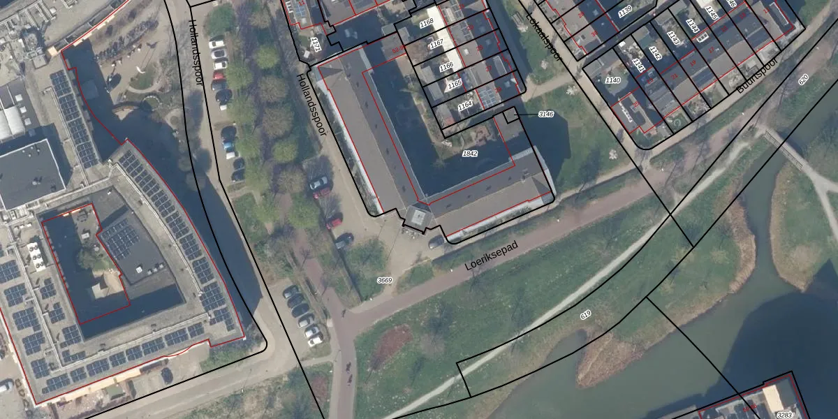 Het perceel waarop Hollandsspoor 80 staat heeft een oppervlakte van 1545 m². Dit is een zeer groot perceel. De perceeloppervlakte wordt geregistreerd door het Kadaster. Gedetailleerde informatie over de maten van dit perceel kunt u vinden in het rapport Kadastrale kaart met maatvoering van Hollandsspoor 80.