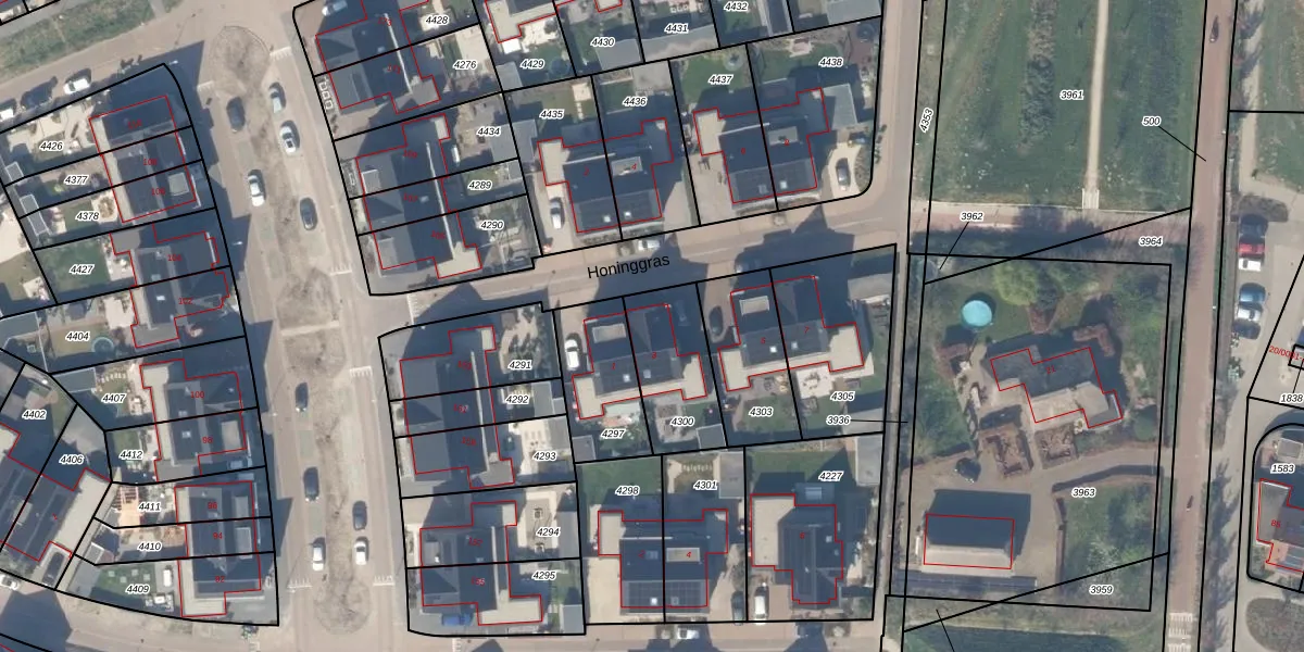 Honinggras 3 is gelegen op kadastraal perceel HTN04B4300. Deze kadastrale aanduiding is uniek en wordt gebruikt door het Kadaster om eigendomsrechten en andere zakelijke rechten vast te leggen. Het perceel maakt onderdeel uit van de kadastrale gemeente Houten.