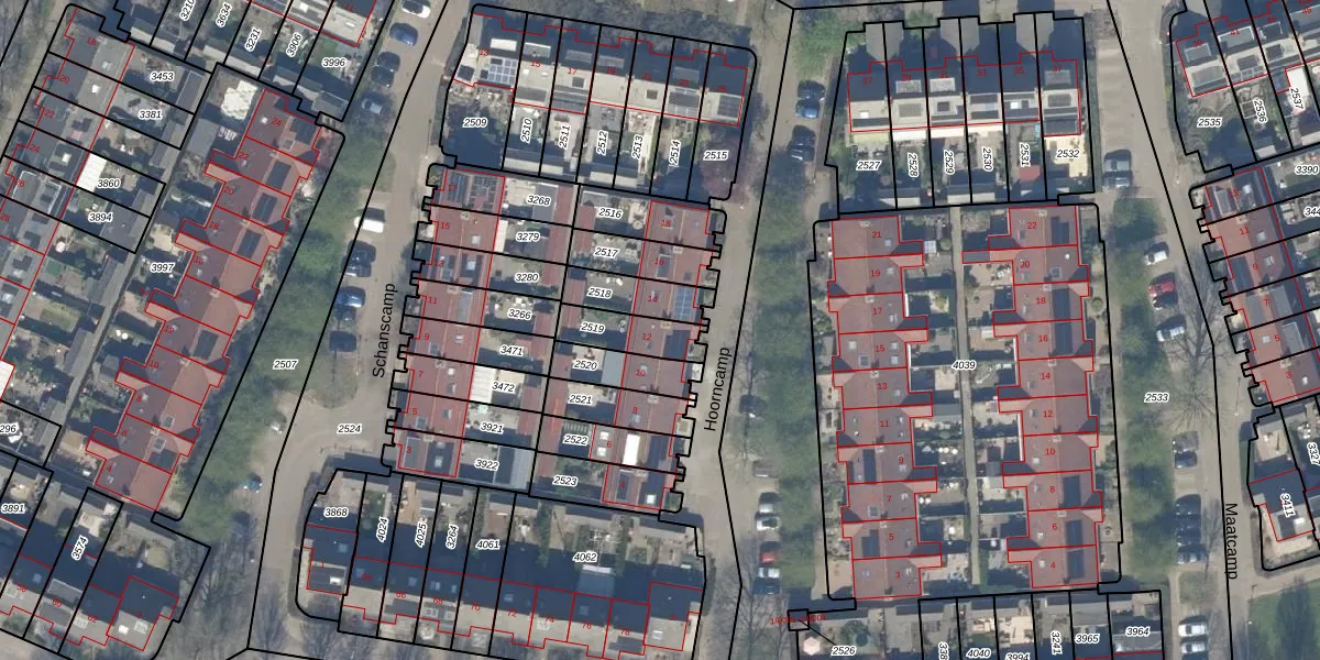 Hoorncamp 12 is gelegen op kadastraal perceel HTN04E2519. Deze kadastrale aanduiding is uniek en wordt gebruikt door het Kadaster om eigendomsrechten en andere zakelijke rechten vast te leggen. Het perceel maakt onderdeel uit van de kadastrale gemeente Houten.