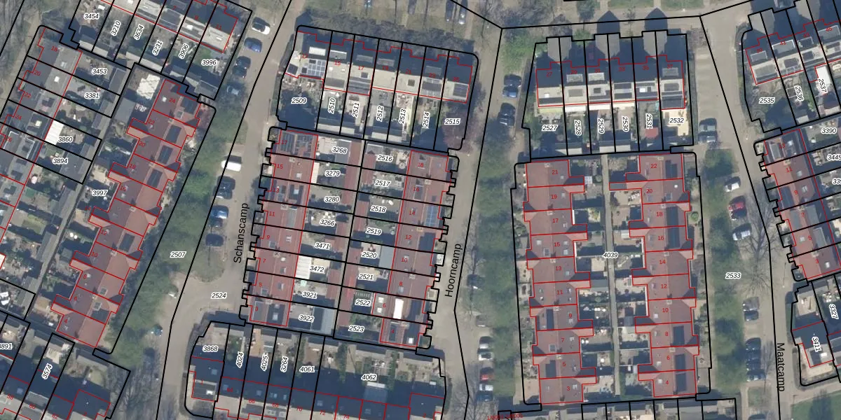 Hoorncamp 14 is gelegen op kadastraal perceel HTN04E2518. Deze kadastrale aanduiding is uniek en wordt gebruikt door het Kadaster om eigendomsrechten en andere zakelijke rechten vast te leggen. Het perceel maakt onderdeel uit van de kadastrale gemeente Houten.