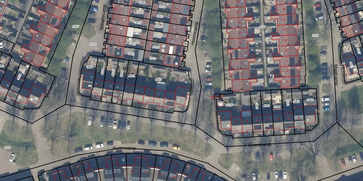 Het perceel waarop Hoorncamp 2 staat heeft een oppervlakte van 734 m². Dit is een groot perceel. De perceeloppervlakte wordt geregistreerd door het Kadaster. Gedetailleerde informatie over de maten van dit perceel kunt u vinden in het rapport Kadastrale kaart met maatvoering van Hoorncamp 2.