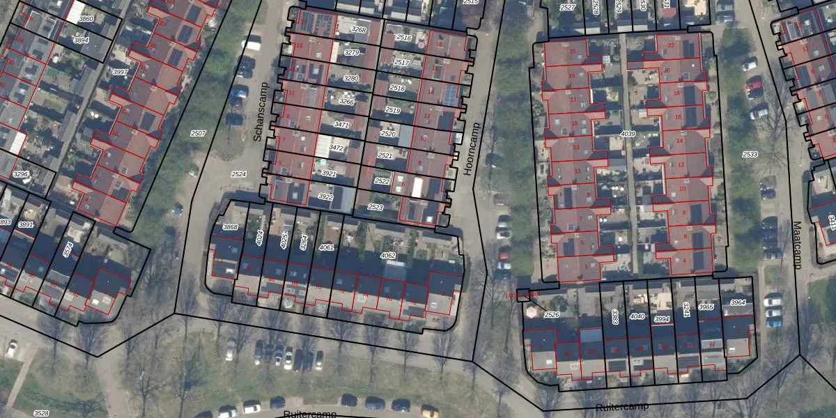 Hoorncamp 4 is gelegen op kadastraal perceel HTN04E2523. Deze kadastrale aanduiding is uniek en wordt gebruikt door het Kadaster om eigendomsrechten en andere zakelijke rechten vast te leggen. Het perceel maakt onderdeel uit van de kadastrale gemeente Houten.