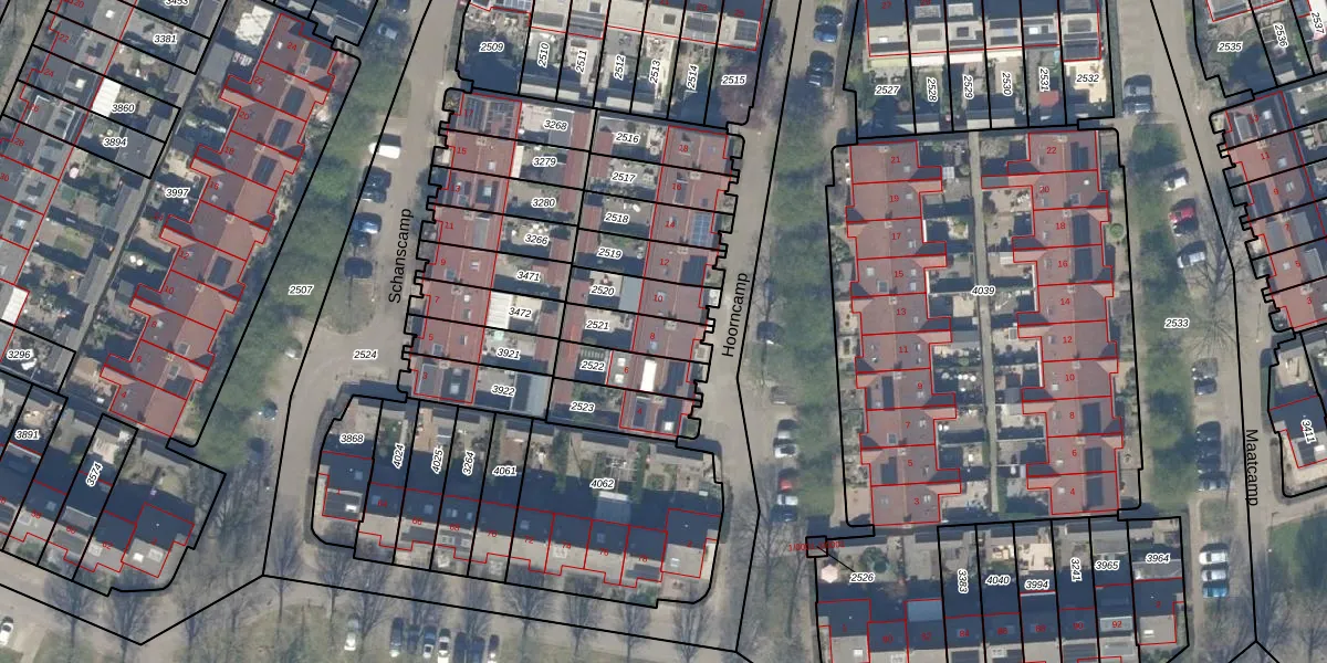 Hoorncamp 8 is gelegen op kadastraal perceel HTN04E2521. Deze kadastrale aanduiding is uniek en wordt gebruikt door het Kadaster om eigendomsrechten en andere zakelijke rechten vast te leggen. Het perceel maakt onderdeel uit van de kadastrale gemeente Houten.