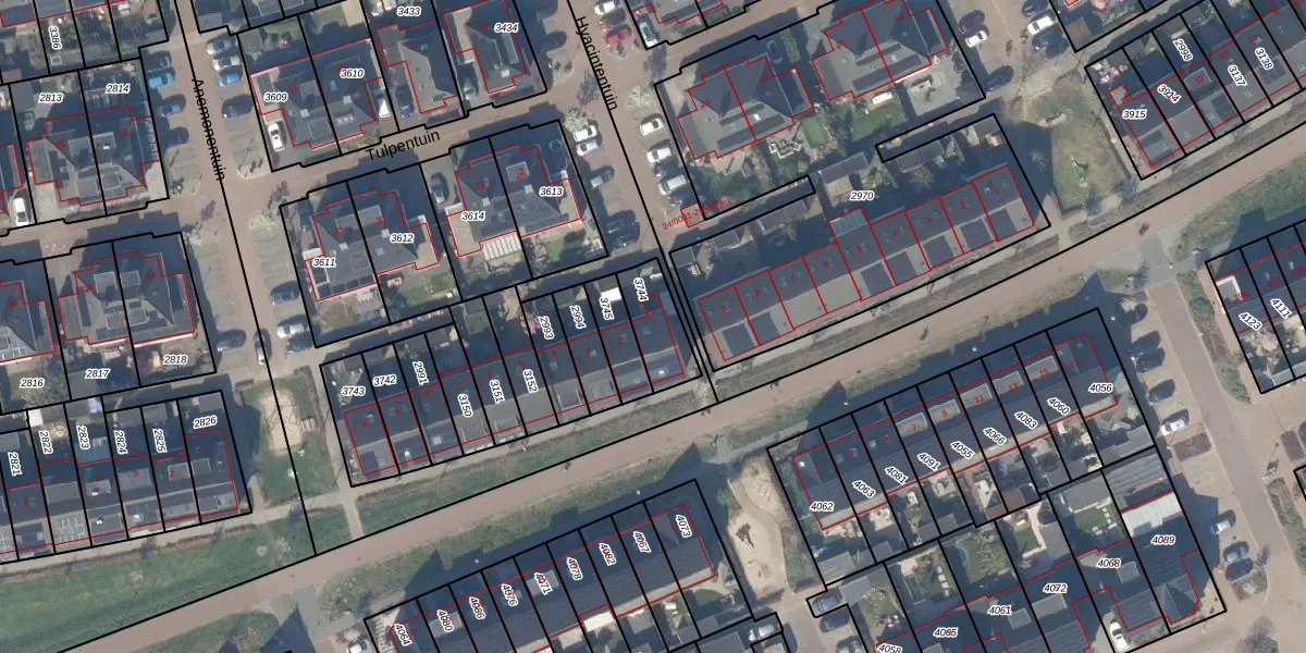 Gebruik de zoekbalk of klik op een perceel voor informatie over de adressen binnen dit perceel.