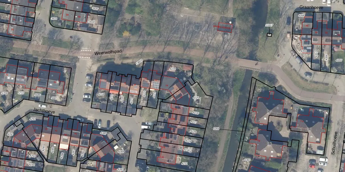 Gebruik de zoekbalk of klik op een perceel voor informatie over de adressen binnen dit perceel.