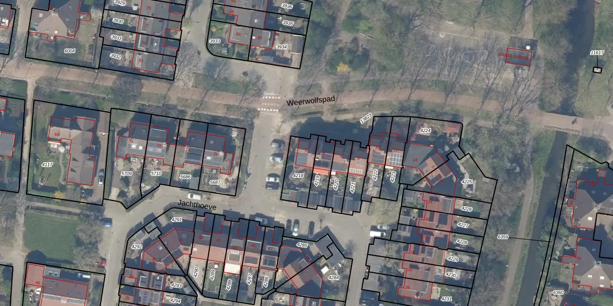 Het perceel waarop Jachthoeve 2 staat heeft een oppervlakte van 197 m². Dit is een middelgroot perceel. De perceeloppervlakte wordt geregistreerd door het Kadaster. Gedetailleerde informatie over de maten van dit perceel kunt u vinden in het rapport Kadastrale kaart met maatvoering van Jachthoeve 2.