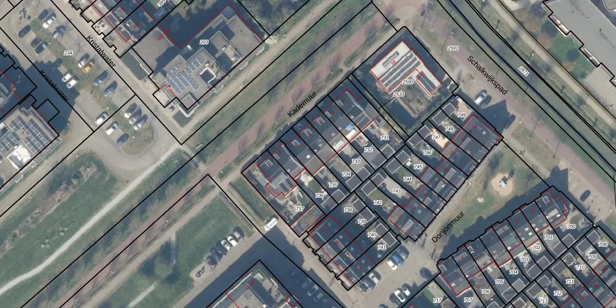 Het perceel waarop Kademuur 3 staat heeft een oppervlakte van 155 m². Dit is een middelgroot perceel. De perceeloppervlakte wordt geregistreerd door het Kadaster. Gedetailleerde informatie over de maten van dit perceel kunt u vinden in het rapport Kadastrale kaart met maatvoering van Kademuur 3.