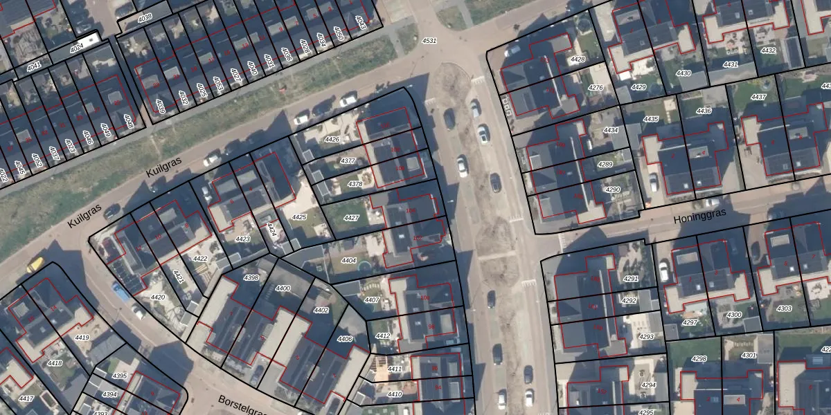 Het adres is gelegen op perceel 4427 in de sectie B en de kadastrale gemeente Houten. De kadastrale aanduiding is aldus HTN04-B-4427. Het perceel is 255 m² groot. Dat is kleiner dan de gemiddelde perceeloppervlakte in Houten, dat op 2872,44 m² ligt. Het kleinste perceel in de kadastrale gemeente is 0 m² groot. De grootste perceeloppervlakte is 45,3 ha. Op het perceel bevinden zich geen andere adressen. De laatste wijziging in het de Basisregistratie Kadaster (BRK) was op 26-06-2024.