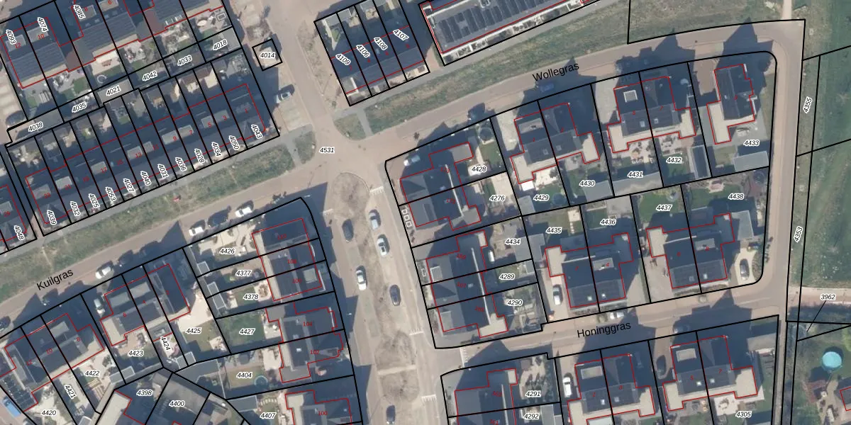 Gebruik de zoekbalk of klik op een perceel voor informatie over de adressen binnen dit perceel.