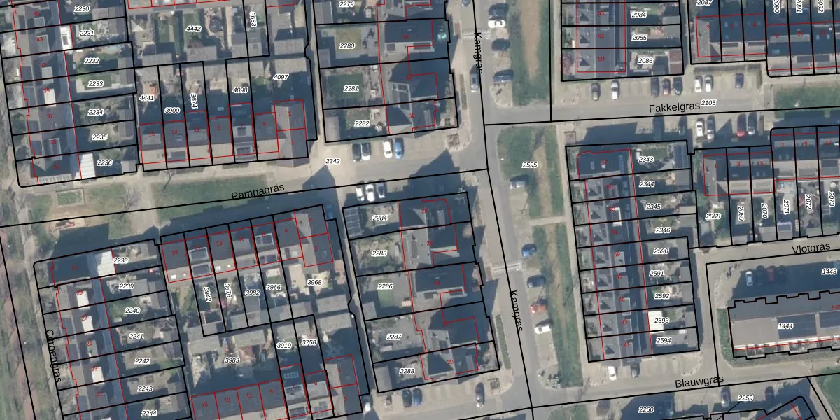 Gebruik de zoekbalk of klik op een perceel voor informatie over de adressen binnen dit perceel.