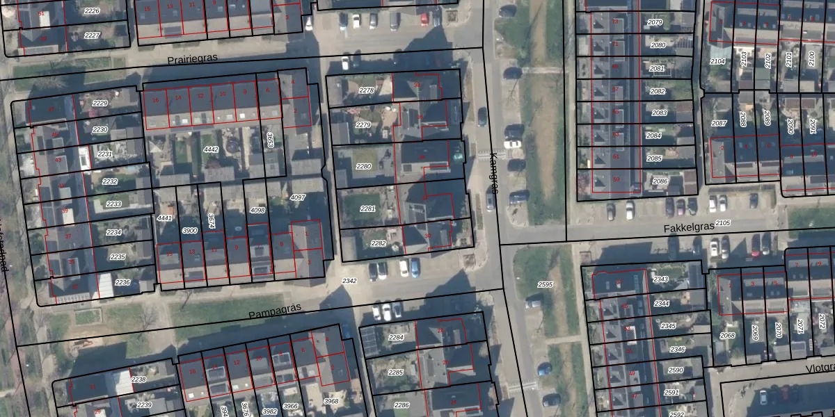 Het perceel waarop Kamgras 32 staat heeft een oppervlakte van 306 m². Dit is een groot perceel. De perceeloppervlakte wordt geregistreerd door het Kadaster. Gedetailleerde informatie over de maten van dit perceel kunt u vinden in het rapport Kadastrale kaart met maatvoering van Kamgras 32.