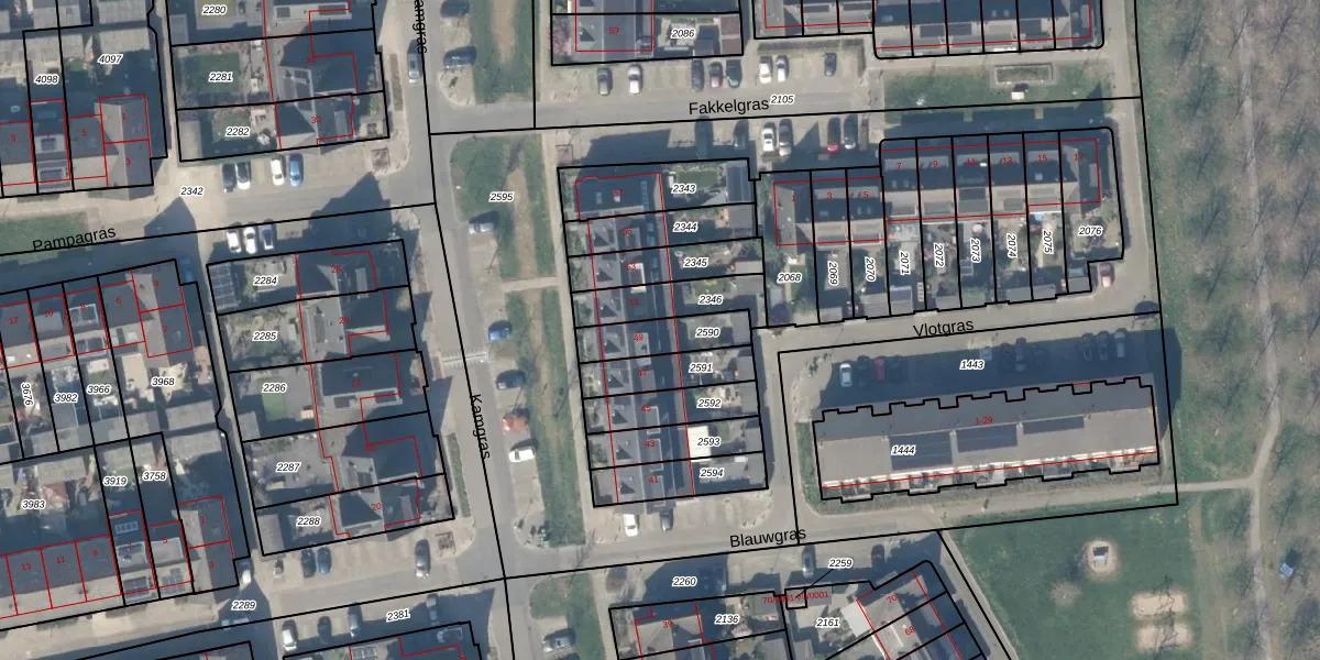 Kamgras 49 is gelegen op kadastraal perceel HTN04B2590. Deze kadastrale aanduiding is uniek en wordt gebruikt door het Kadaster om eigendomsrechten en andere zakelijke rechten vast te leggen. Het perceel maakt onderdeel uit van de kadastrale gemeente Houten.
