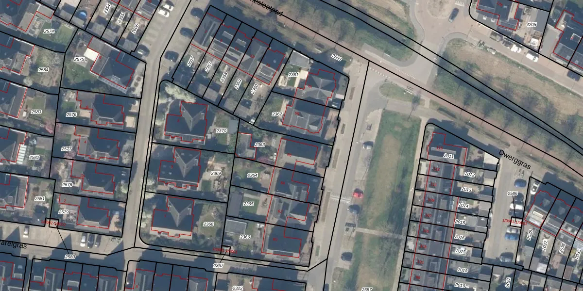 Het perceel waarop Kamgras 66 staat heeft een oppervlakte van 375 m². Dit is een groot perceel. De perceeloppervlakte wordt geregistreerd door het Kadaster. Gedetailleerde informatie over de maten van dit perceel kunt u vinden in het rapport Kadastrale kaart met maatvoering van Kamgras 66.