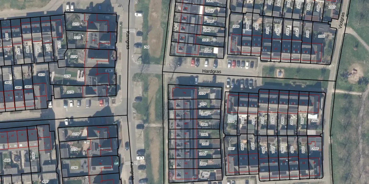 Kamgras 75 is gelegen op kadastraal perceel HTN04B2078. Deze kadastrale aanduiding is uniek en wordt gebruikt door het Kadaster om eigendomsrechten en andere zakelijke rechten vast te leggen. Het perceel maakt onderdeel uit van de kadastrale gemeente Houten.