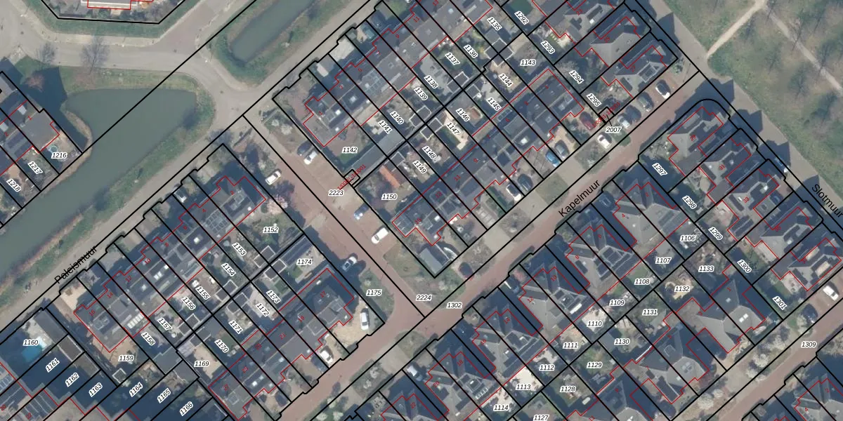 Kapelmuur 15 is gelegen op kadastraal perceel HTN04H1150. Deze kadastrale aanduiding is uniek en wordt gebruikt door het Kadaster om eigendomsrechten en andere zakelijke rechten vast te leggen. Het perceel maakt onderdeel uit van de kadastrale gemeente Houten.
