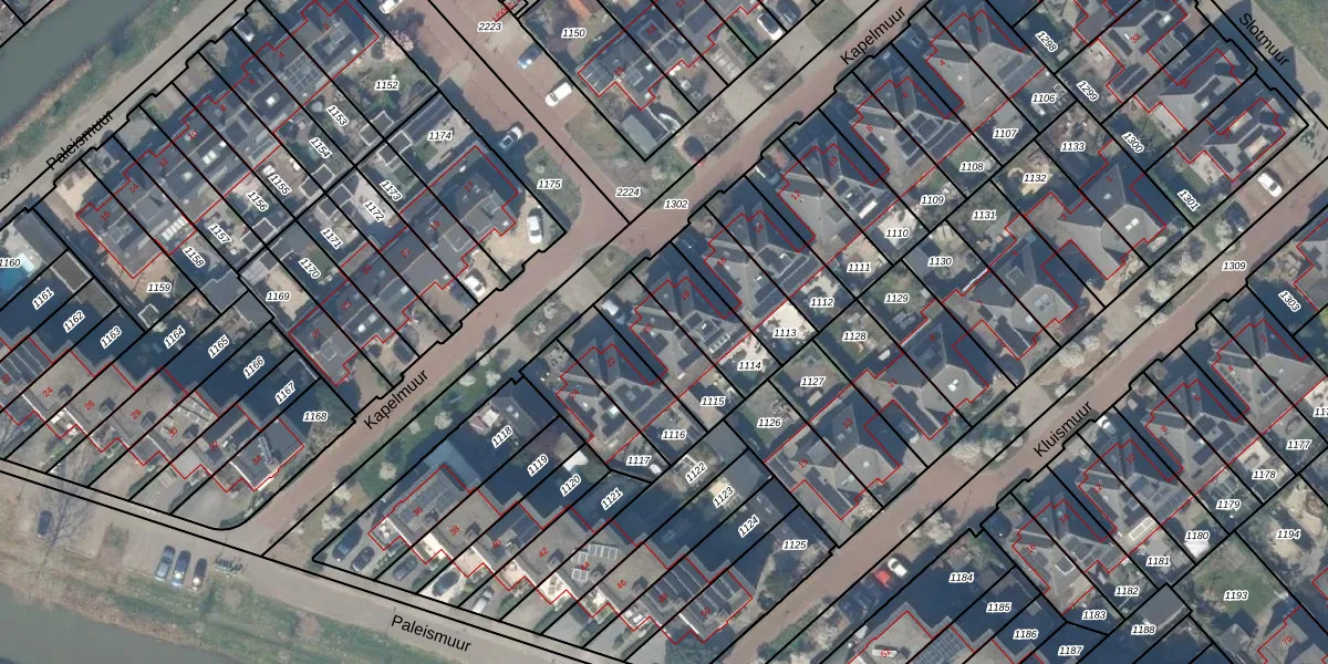 Het perceel waarop Kapelmuur 20 staat heeft een oppervlakte van 195 m². Dit is een middelgroot perceel. De perceeloppervlakte wordt geregistreerd door het Kadaster. Gedetailleerde informatie over de maten van dit perceel kunt u vinden in het rapport Kadastrale kaart met maatvoering van Kapelmuur 20.
