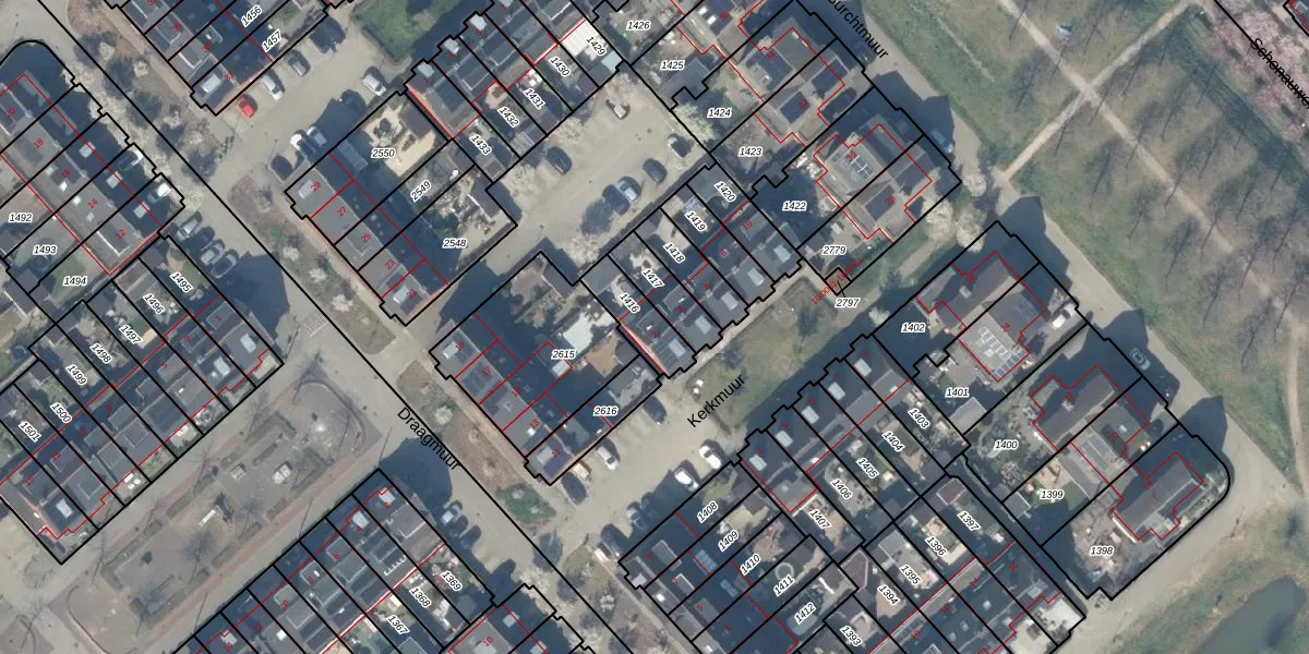 Kerkmuur 2 is gelegen op kadastraal perceel HTN04H1416. Deze kadastrale aanduiding is uniek en wordt gebruikt door het Kadaster om eigendomsrechten en andere zakelijke rechten vast te leggen. Het perceel maakt onderdeel uit van de kadastrale gemeente Houten.