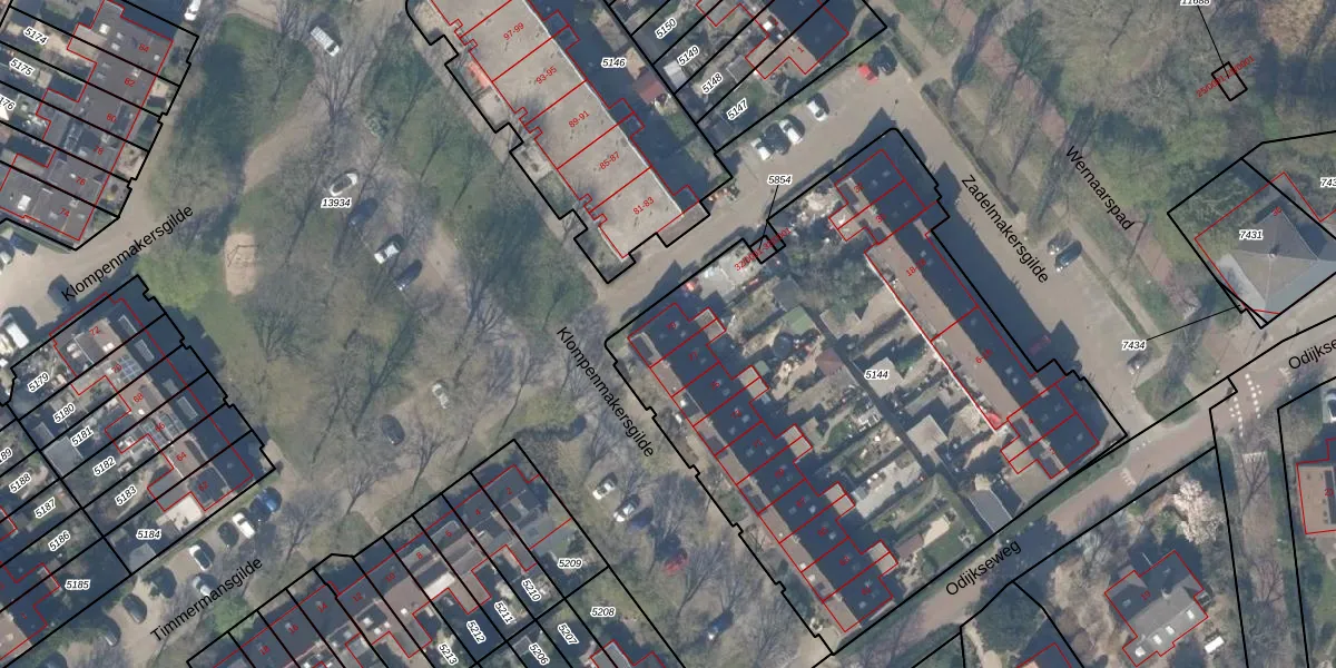 Het perceel waarop Klompenmakersgilde 79 staat heeft een oppervlakte van 3005 m². Dit is een zeer groot perceel. De perceeloppervlakte wordt geregistreerd door het Kadaster. Gedetailleerde informatie over de maten van dit perceel kunt u vinden in het rapport Kadastrale kaart met maatvoering van Klompenmakersgilde 79.