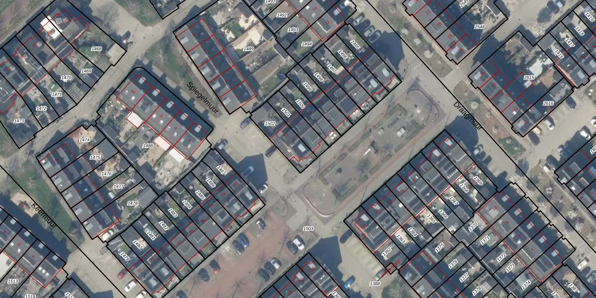 Gebruik de zoekbalk of klik op een perceel voor informatie over de adressen binnen dit perceel.