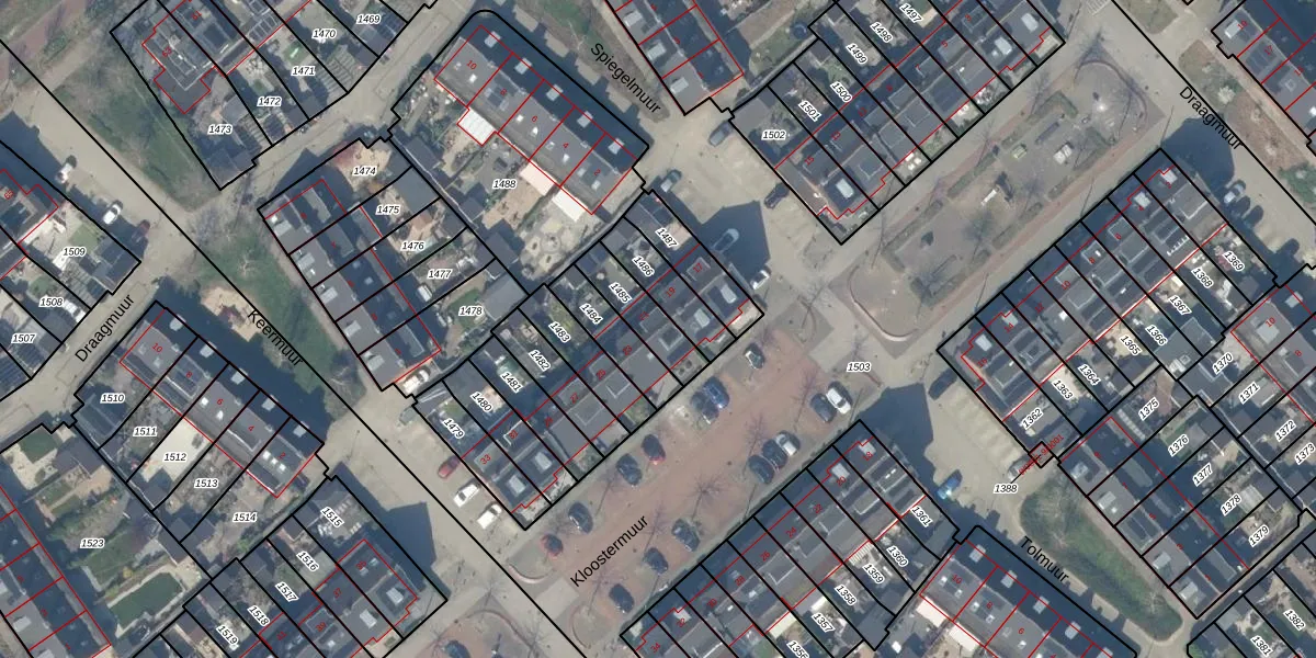 Het perceel waarop Kloostermuur 21 staat heeft een oppervlakte van 134 m². Dit is een middelgroot perceel. De perceeloppervlakte wordt geregistreerd door het Kadaster. Gedetailleerde informatie over de maten van dit perceel kunt u vinden in het rapport Kadastrale kaart met maatvoering van Kloostermuur 21.