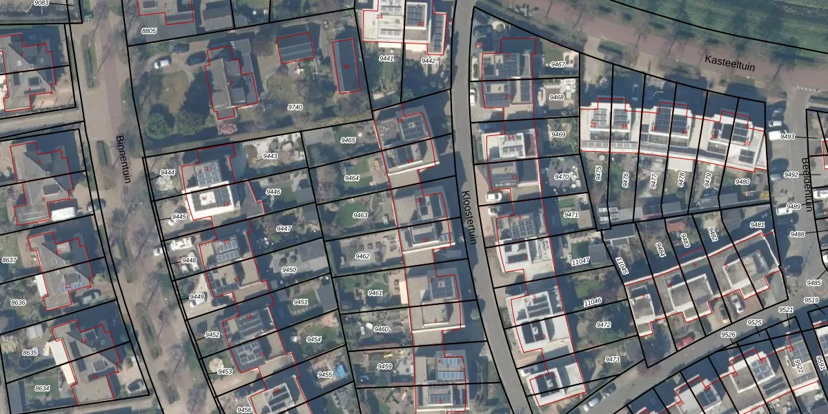 Het perceel waarop Kloostertuin 12 staat heeft een oppervlakte van 332 m². Dit is een groot perceel. De perceeloppervlakte wordt geregistreerd door het Kadaster. Gedetailleerde informatie over de maten van dit perceel kunt u vinden in het rapport Kadastrale kaart met maatvoering van Kloostertuin 12.