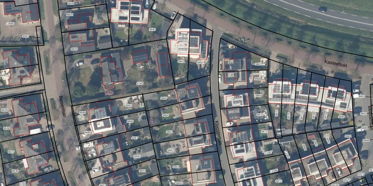 Kloostertuin 16 is gelegen op kadastraal perceel HTN04A9465. Deze kadastrale aanduiding is uniek en wordt gebruikt door het Kadaster om eigendomsrechten en andere zakelijke rechten vast te leggen. Het perceel maakt onderdeel uit van de kadastrale gemeente Houten.