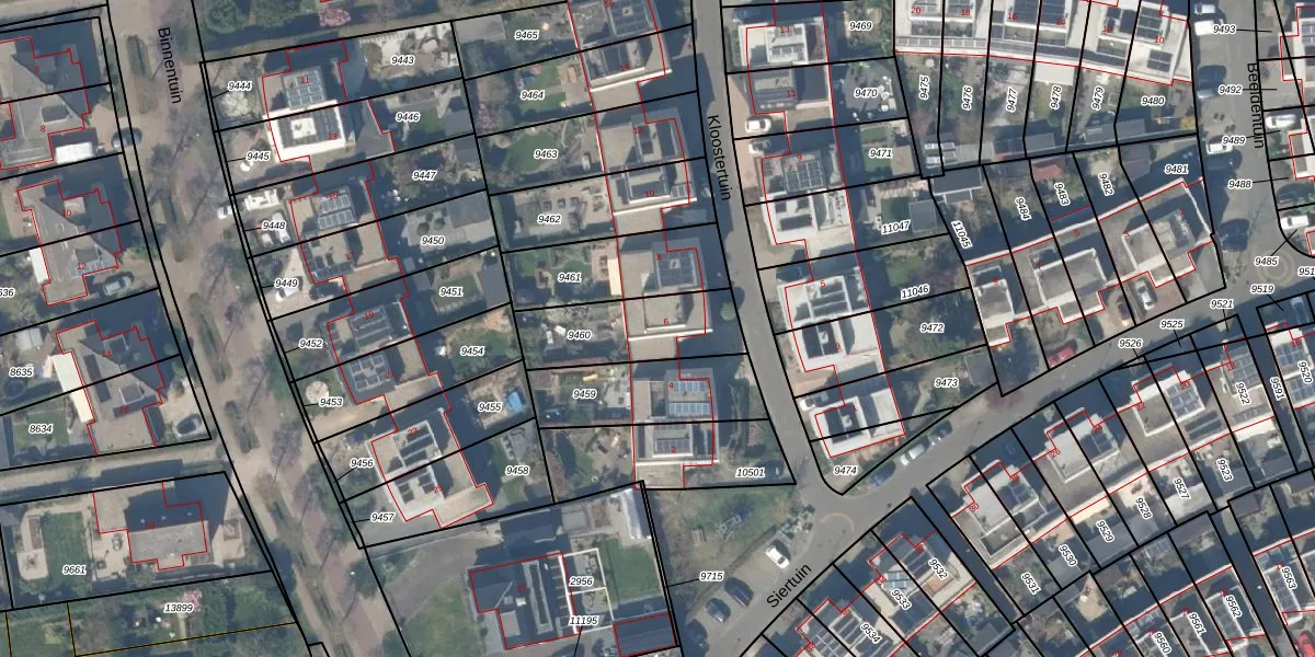 Kloostertuin 6 is gelegen op kadastraal perceel HTN04A9460. Deze kadastrale aanduiding is uniek en wordt gebruikt door het Kadaster om eigendomsrechten en andere zakelijke rechten vast te leggen. Het perceel maakt onderdeel uit van de kadastrale gemeente Houten.