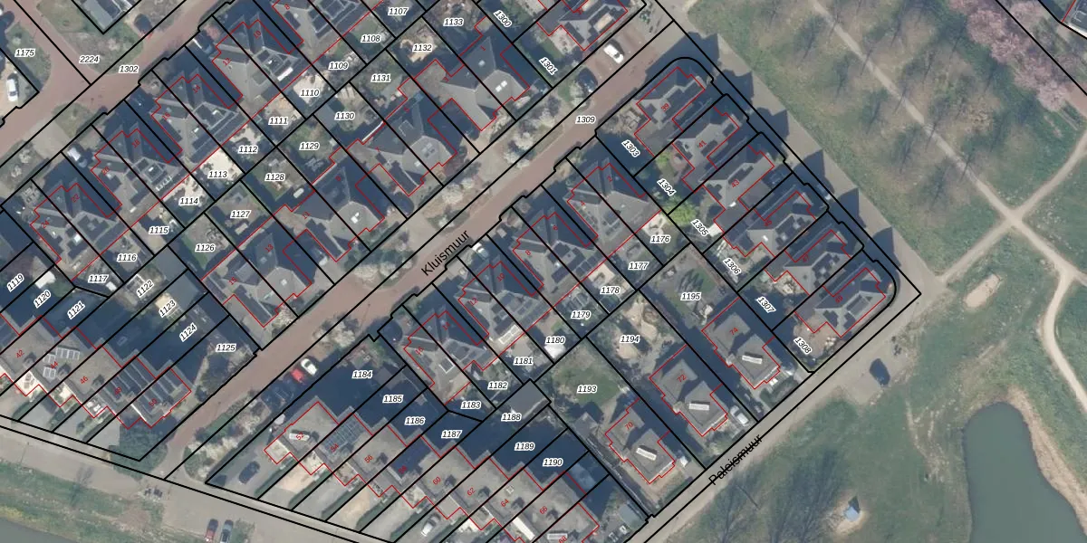 Het perceel waarop Kluismuur 8 staat heeft een oppervlakte van 180 m². Dit is een middelgroot perceel. De perceeloppervlakte wordt geregistreerd door het Kadaster. Gedetailleerde informatie over de maten van dit perceel kunt u vinden in het rapport Kadastrale kaart met maatvoering van Kluismuur 8.