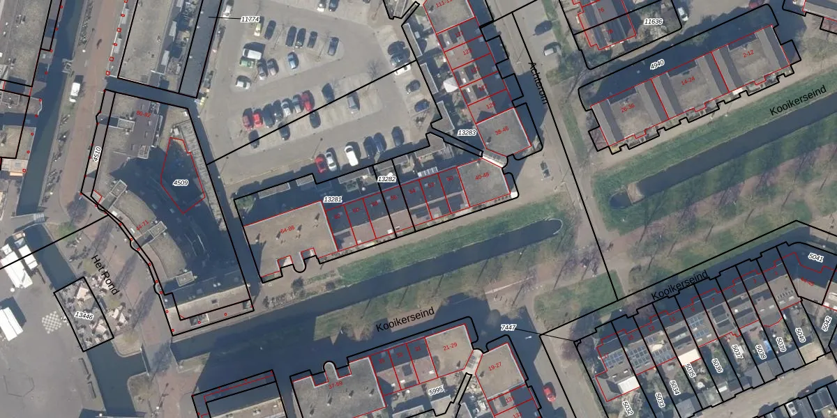 Kooikerseind 54 is gelegen op kadastraal perceel HTN04A13283. Deze kadastrale aanduiding is uniek en wordt gebruikt door het Kadaster om eigendomsrechten en andere zakelijke rechten vast te leggen. Het perceel maakt onderdeel uit van de kadastrale gemeente Houten.