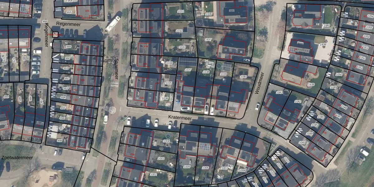 Het perceel waarop Kratermeer 2 staat heeft een oppervlakte van 313 m². Dit is een groot perceel. De perceeloppervlakte wordt geregistreerd door het Kadaster. Gedetailleerde informatie over de maten van dit perceel kunt u vinden in het rapport Kadastrale kaart met maatvoering van Kratermeer 2.