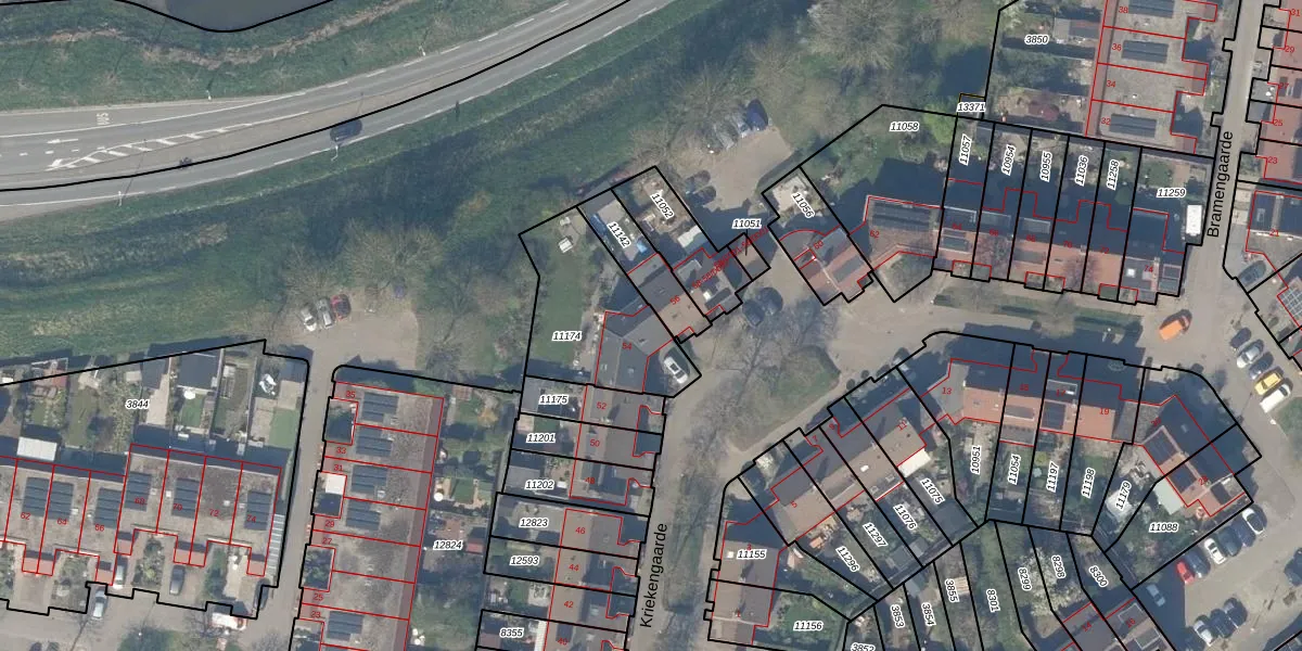 Kriekengaarde 54 is gelegen op kadastraal perceel HTN04A11174. Deze kadastrale aanduiding is uniek en wordt gebruikt door het Kadaster om eigendomsrechten en andere zakelijke rechten vast te leggen. Het perceel maakt onderdeel uit van de kadastrale gemeente Houten.