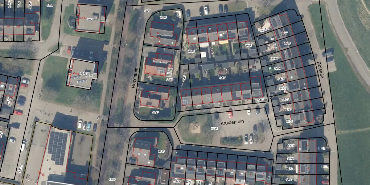 Kruidentuin 15 is gelegen op kadastraal perceel HTN04A8946. Deze kadastrale aanduiding is uniek en wordt gebruikt door het Kadaster om eigendomsrechten en andere zakelijke rechten vast te leggen. Het perceel maakt onderdeel uit van de kadastrale gemeente Houten.