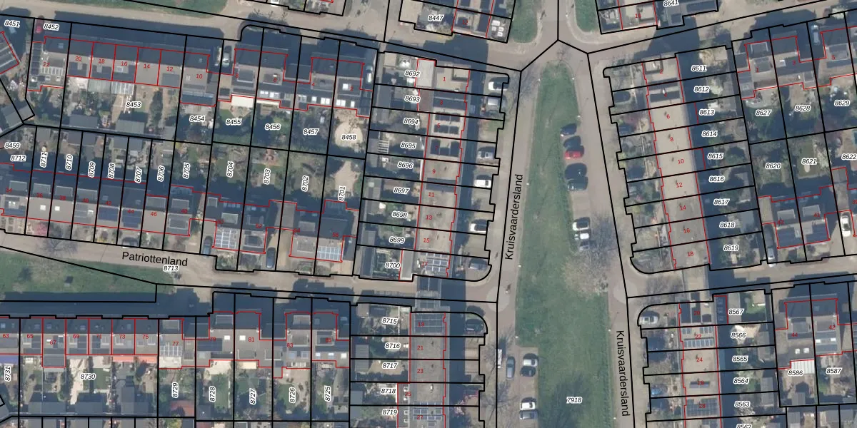 Het perceel waarop Kruisvaardersland 13 staat heeft een oppervlakte van 165 m². Dit is een middelgroot perceel. De perceeloppervlakte wordt geregistreerd door het Kadaster. Gedetailleerde informatie over de maten van dit perceel kunt u vinden in het rapport Kadastrale kaart met maatvoering van Kruisvaardersland 13.