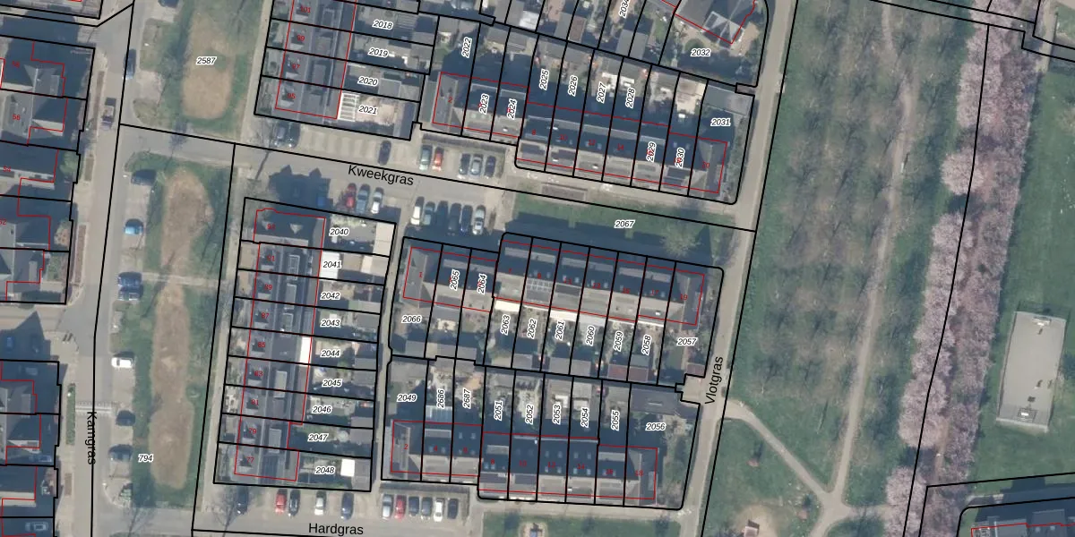 Kweekgras 9 is gelegen op kadastraal perceel HTN04B2062. Deze kadastrale aanduiding is uniek en wordt gebruikt door het Kadaster om eigendomsrechten en andere zakelijke rechten vast te leggen. Het perceel maakt onderdeel uit van de kadastrale gemeente Houten.