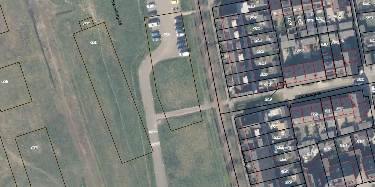 Kweldergras 57 is gelegen op kadastraal perceel HTN04B4570. Deze kadastrale aanduiding is uniek en wordt gebruikt door het Kadaster om eigendomsrechten en andere zakelijke rechten vast te leggen. Het perceel maakt onderdeel uit van de kadastrale gemeente Houten.