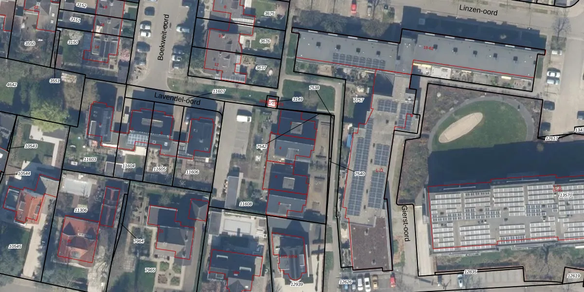 Het perceel waarop Lavendel-oord 4 staat heeft een oppervlakte van 1428 m². Dit is een zeer groot perceel. De perceeloppervlakte wordt geregistreerd door het Kadaster. Gedetailleerde informatie over de maten van dit perceel kunt u vinden in het rapport Kadastrale kaart met maatvoering van Lavendel-oord 4.
