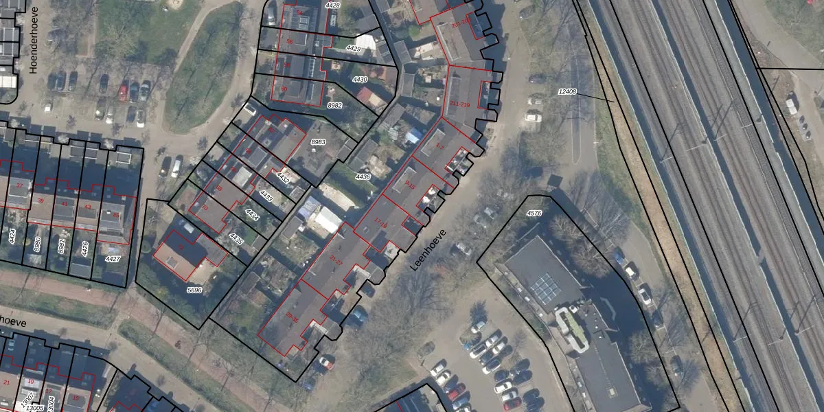 Het perceel waarop Leenhoeve 13 staat heeft een oppervlakte van 2895 m². Dit is een zeer groot perceel. De perceeloppervlakte wordt geregistreerd door het Kadaster. Gedetailleerde informatie over de maten van dit perceel kunt u vinden in het rapport Kadastrale kaart met maatvoering van Leenhoeve 13.